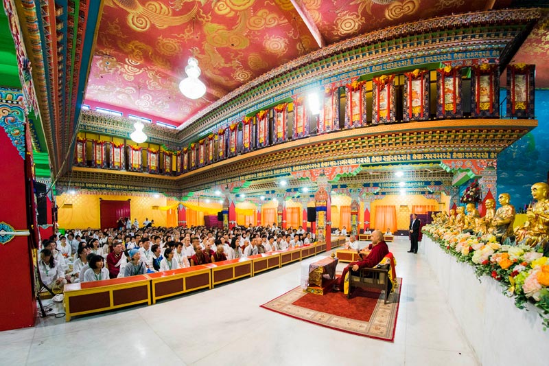 Upon arrival the Gyalwang Karmapa expressed his warm greetings to all of the volunteers. Then, he expounded on the meaning of bodhicitta and Monlam.