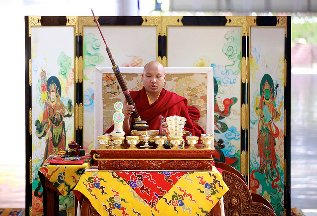 When the Karmapa discussed the special event of the Grand Empowerment of Chakrasamvara during the Winter Debates, he explained, “Usually I do not give many empowerments, only two or three a year, and a grand empowerment from the unexcelled yoga tantra I have only given once before in this lifetime. It was when Tenga Rinpoche was still with us, and he assisted me in giving the vase empowerment from this same Great Empowerment of Chakrasamvara.”