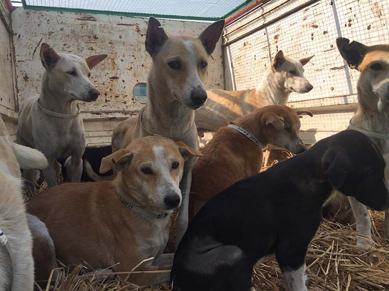 After a day resting and recovering from their surgery, deworming and anti-rabies vaccination, the first batch of 24 dogs was ready to go home on 21st January. The dogs are well-fed while resting in their hospital cages on a thick bed of straw, warm against the outside winter cold weather.