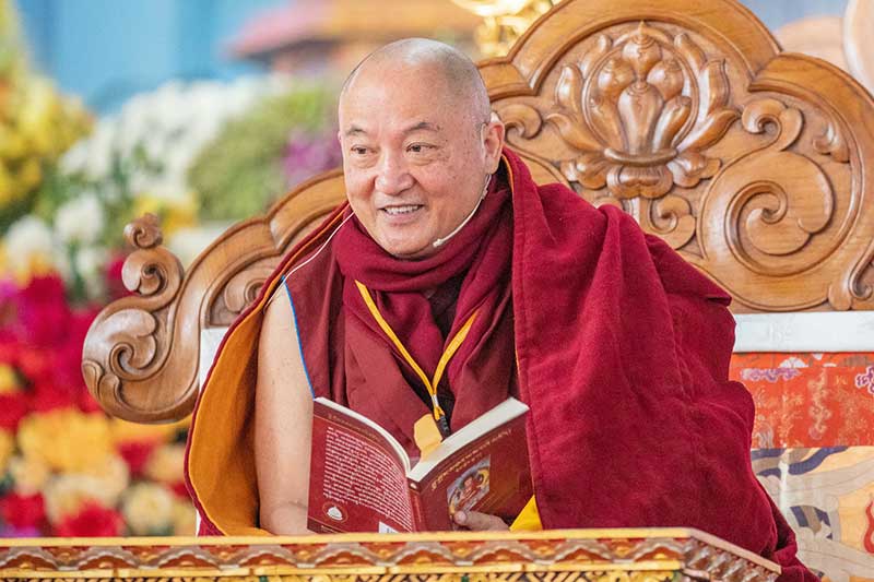 Aphorism 55 states, “Liberate yourself through considering and examining.” “When practicing the teachings of mind training,” Rinpoche stated, “we should be looking into ourselves, searching to see which affliction is active and being ready to respond. Even if at first it seems that we cannot do this well, analyzing the state of our mind again and again is the way we will be able to progress along the path and attain liberation.”
