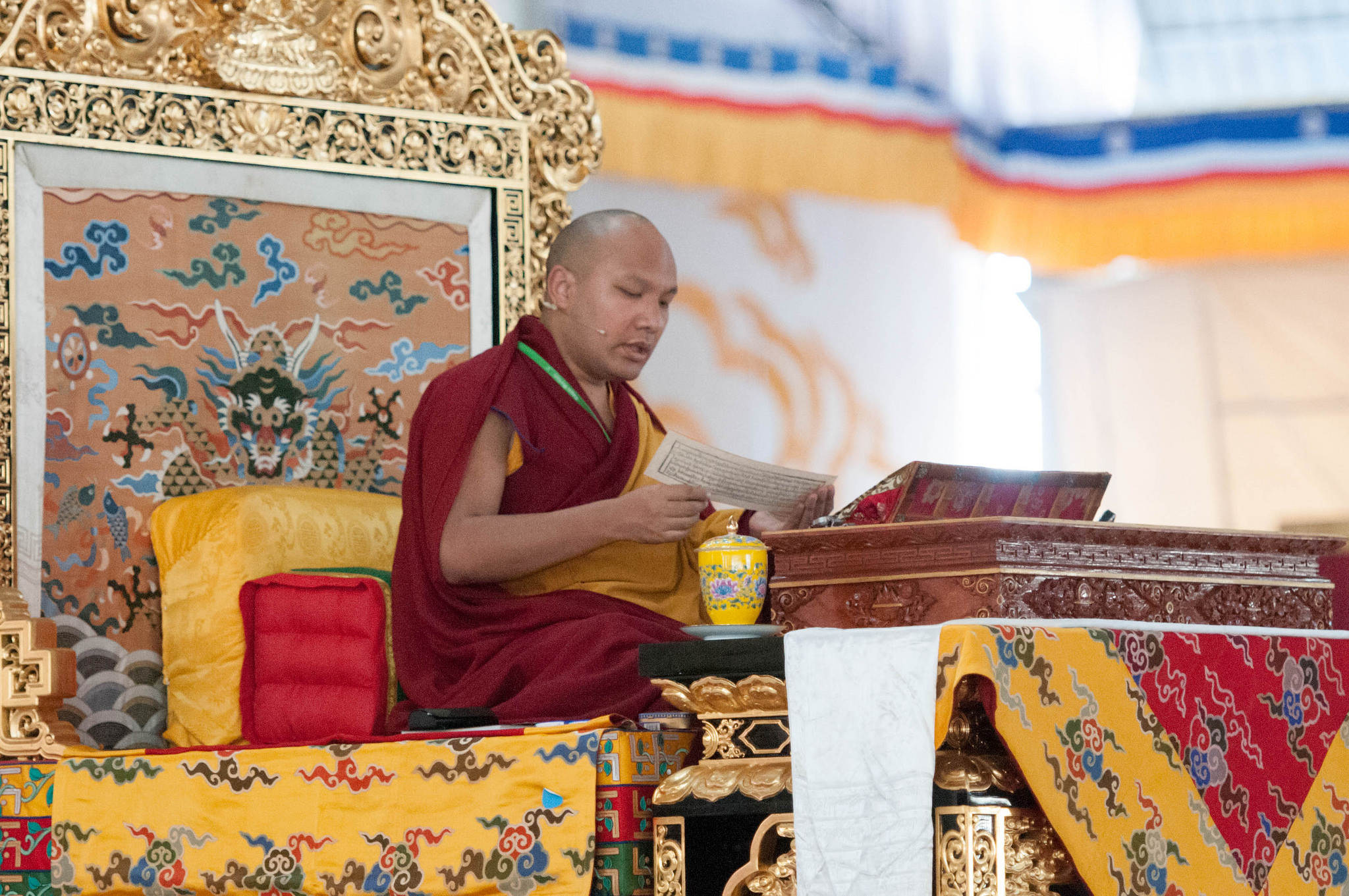 The Karmapa began his talk today by explaining the difference between the guru yoga that is a part of the mahamudra preliminaries and the Four Session Guru Yoga by the Eighth Karmapa, Mikyö Dorje. There are numerous guru yogas of various lengths in the Karma Kamtsang tradition, the Karmapa explained, and among them all, the most precious is the Four Session Guru Yoga. However, people from different traditions have received the Chakrasamvara empowerment and made the commitment to do a guru yoga practice, but this does not mean that they have to do a Kamtsang guru yoga, as it is perfectly fine to do one from their own tradition.