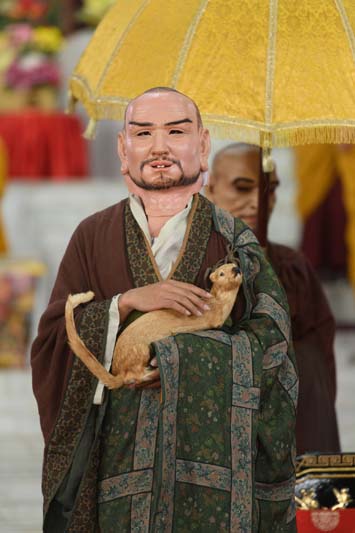 2. The incense bearers help in many ways, from tossing flowers into the water tank to holding retreatants’ hats as they don the wet robes.