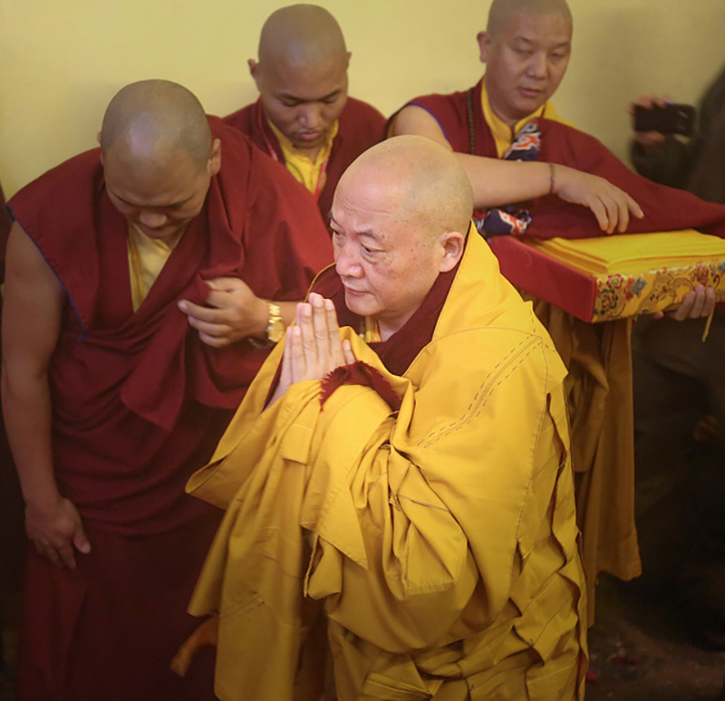 2. HE Gyaltsap Rinpoche and entourage arrive at the Mahabodhi Temple grounds.