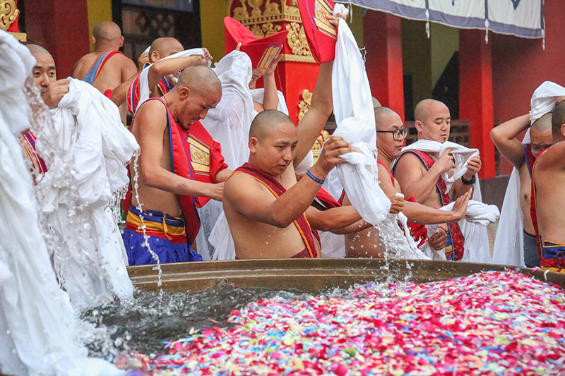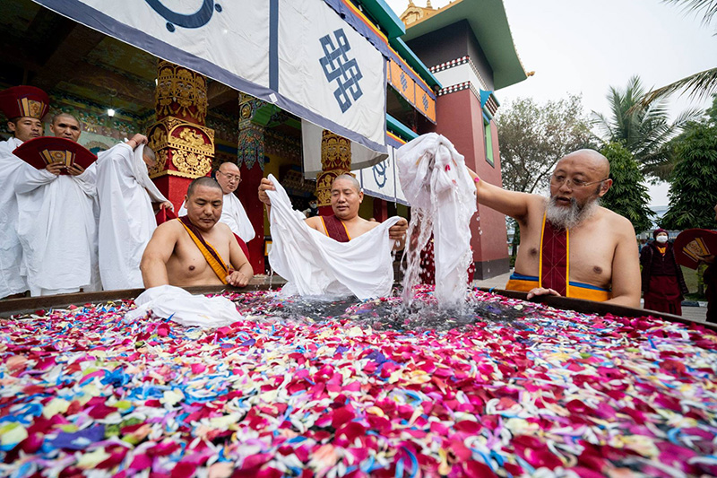 Comprised only of monks who have completed the traditional three-year retreat in the Kagyu tradition, this ceremony is a test of their accomplishment as yogis and takes place on the last day of the Monlam. It was incorporated into the Monlam by His Holiness the 17th Gyalwang Karmapa during the 34th Monlam in February 2017, following a tradition established by the 7th Karmapa, Choedrak Gyatso.