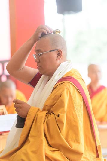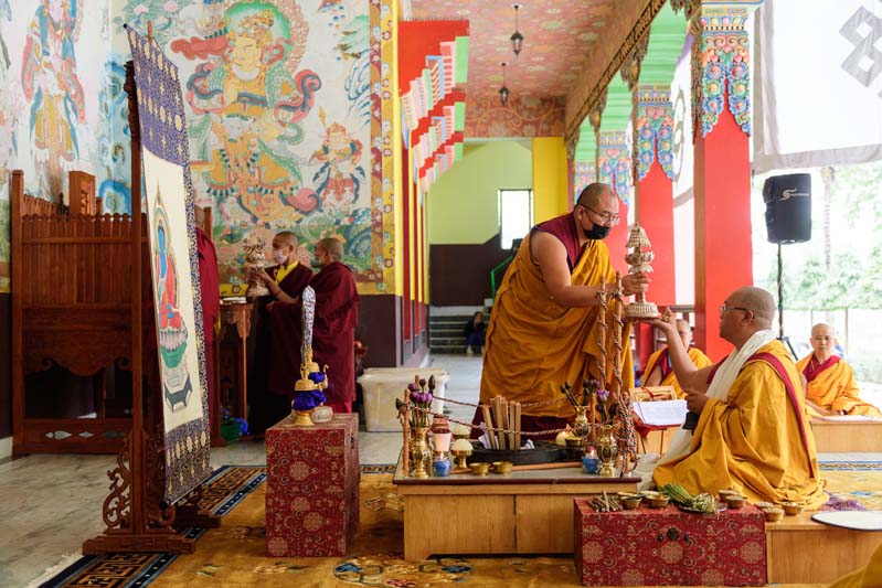 7. Here Andzin Rinpoche receives the parasol to offer it.