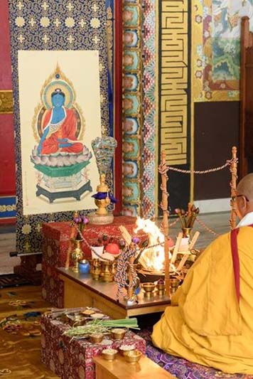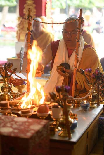 Once more, Andzin Rinpoche led the annual Akshobhya fire ritual offered on the penultimate day of the Monlam.
