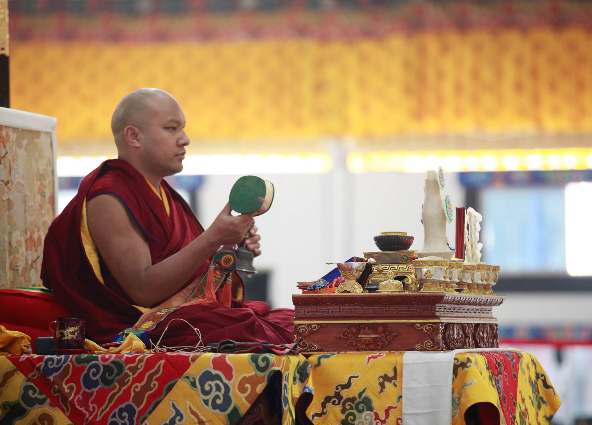 བུམ་དབང་གི་སྔོན་དུ་འགྲོ་དགོས་པ་ལ་བྱ་བ་གཉིས་སུ་མཆིས་པ་ལས། དང་པོ་ལ་ས་ཆོག་དང་། གཉིས་པ་ལ་སྟ་གོན་ཞེས་བརྗོད། དེ་ཡང་ཕྱི་ལོ་ ༢༠༡༧ ཟླ་བ་གཉིས་པའི་ཚེས་ ༦ ཉིན་སྔ་དྲོ་དུས་ཚོད་ ༦ པའི་ཐོག་༸དཔལ་རྒྱལ་དབང་ཀརྨ་པ་མཆོག་བཞུགས་མཚེར་གཏེར་སྒར་དགོན་ནས་སྨོན་ལམ་ཆོས་རར་དུང་རྒྱ་སྤོས་སྣ་དང་བཅས་གདན་ཞུས་ཀྱིས་ཆིབས་སྒྱུར་བསྐྱངས་ཏེ་བཞུགས་ཁྲིར་ཞབས་འཁོད་ཐོག་ཕྱོགས་བཞིར་སྒྲུབ་དཔོན་བདེ་ཆེན་རིན་པོ་ཆེ་དང་རུམ་བཏེག་སྒྲུབ་དཔོན་གཙོས་སྒྲུབ་ཐེངས་དང་པོ་ཟིན་པའི་སྒྲུབ་བླ་རྣམས་དང་། དེ་བཞིན་གདན་ས་རུམ་བཏེག་གི་རྡོར་སློབ་དང་དབུ་མཛད་ཀྱིས་དབུས་པའི་ཆོག་གྲྭ་དགེ་འདུན་སུམ་ཅུ་ཙམ་ནས་དགོང་དྲོའི་དུས་ཡུན་བར་ས་ཆོག་མཛད།