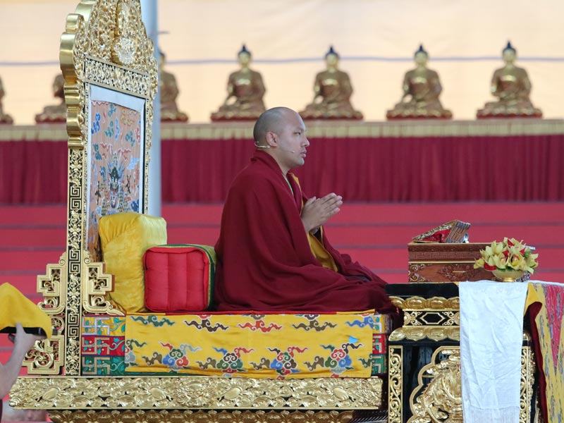 ད་ལན་དམིགས་བསལ་ཐུན་བཞི་བླ་མའི་རྣལ་འབྱོར་གྱི་གསོལ་འདེབས་དེ་ཉིད་ལ་སྒྲ་ལྡན་ཞིག་བཟོས་ཡོད་། ང་རང་གིས་ཐུན་བཞི་བླ་མའི་རྣལ་འབྱོར་གྱི་གསོལ་འདེབས་དེ་ཉིད་འགོ་ནས་འཇུག་བར་བཀླགས་པའི་སྒྲ་ཉིད་བཅུག་ཡོད། སྤྱིར་ཐུན་བཞི་དེ་ཉིད་རྒྱ་ཡིག་དང་ཨིན་ཡིག་གཉིས་ཀའི་ཐོག་ཏུ་ཡོད་པས་རྒྱ་དང་ཨིན་ཇིའི་མི་རིགས་རྣམས་སོ་སོའི་སྐད་ཡིག་གི་ཐོག་ཏུ་འདོན་ཡང་འགྲིག  །འོན་ཏང་བོད་སྐད་དུ་འདོན་འདོད་མཆིས་པ་རྣམས་ནས་སྒྲ་དེ་ཉན་ནས་འདོན་ཡང་རུང་། །ཞེས་བཀའ་སྩལ་ཏོ། ༏