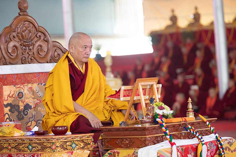 བཀའ་བརྒྱུད་སྨོན་ལམ་ཉིན་གཉིས་པའི་སྔ་དྲོ་ཆུ་ཚོད་དྲུག་པ་སྟེ་ཚོགས་ཐུན་དང་པོར་༧སྐྱབས་རྗེ་གར་དབང་རིན་པོ་ཆེ་མཆོག་ནས་མཆོག་གི་སྤྲུལ་པའི་སྐུ་རྣམ་པ་དང་། མཁན་སློབ་དབུ་ཆོས་རྣམ་པ། དེ་བཞིན་སྨོན་ལམ་གྱི་ཚོགས་ཞུགས་དགེ་བཙུན་ཡོངས་དང་། དད་ལྡན་སྐྱ་སེར་ཕོ་མོ་ཡོངས་ལ་གསོ་སྦྱོང་གི་སྡོམ་པ་སྩལ་རྗེས་སྔ་དྲོའི་འདོན་བྱ་ཁག་ལེགས་པར་གྲུབ་པས་ཚོགས་ཐུན་དང་པོ་གྲོལ། དེ་མཇུག་ཚོགས་ཐུན་གཉིས་པ་སྨོན་ལམ་གསུང་ཆོས་ཉིན་གཉིས་པ་ཁ་རྩང་གི་འཕྲོས་ནས་བསྐྱངས། དེ་ཡང་སྨོན་ལམ་གསུང་ཆོས་ཉིན་གཉིས་པར། ༧སྐྱབས་རྗེ་གོ་ཤྲཱི་རྒྱལ་བའི་རྒྱལ་ཚབ་རིན་པོ་ཆེ་མཆོག་གི་བཞུགས་ཁྲིའི་དྲུང་དུ། དད་ལྡན་སྦྱིན་པའི་བདག་པོ་དུ་མ་ཞིག་ནས་མཎྜལ་སྐུ་གསུང་ཐུགས་རྟེན་འདེགས་འབུལ་གྲུབ་རྟིང། རིན་པོ་ཆེ་མཆོག་ནས་གསུང་ཆོས་དབུ་འཛུགས་བསྐྱངས་ཏེ། དེ་ཡང་ནམ་མཁའ་དང་མཉམ་པའི་སེམས་ཅན་ཐམས་ཅད་རྣམ་མཁྱེན་བླ་ན་མེད་པ་ཡང་དག་པར་རྫོགས་པའི་སངས་རྒྱས་ཀྱི་གོ་འཕང་ལ་ཅི་ནས་ཀྱང་འགོད་པར་བྱ། དེའི་ཆེད་དུ་དམ་པའི་ཆོས་དེ་ཉིད་ཉན་པར་བགྱིའོ་སྙམ་པའི་ཀུན་སློང་བྱང་ཆུབ་མཆོག་ཏུ་སེམས་བསྐྱེད་པ་སྔོན་དུ་མཛད་དེ་གསན་པར་ཞུ། གང་གསན་པར་བྱ་བའི་ཆོས་ནི། ཁ་རག་སྒོམ་ཆུང་གིས་མཛད་པའི་བློ་སྦྱོང་ཨང་ཡིག་བདུན་ཅུ་པ། དེ་ལའང་ཐོག་མར་དགེ་བ། བར་དུ་དགེ་བ། མཐའ་མར་དགེ་བ་གསུམ་ལས། དང་པོ་བཤད་ཟིན་ནས། གཉིས་པ་བར་དུ་དགེ་བར། རྩ་བར། ད་ལྟའི་བདེ་དང་སྡུག་བསྔལ་ཀུན། །སྔ་མའི་ལས་ལ་རག་ལས་པས། །ཞེས། ཚེ་འདིར་སྐྱེ་བའི་སྐབས་སུ་བདེ་བ་དང་སྡུག་བསྔལ་མྱངས་ཡོད། དར་ལ་བབ་པའི་སྐབས་སུའང་བདེ་བ་དང་སྡུག་བསྔལ་མྱངས་ཡོད། ད་ལྟའང་བདེ་བ་དང་སྡུག་བསྔལ་ཡོང་གི་ཡོད། ལྷག་པར་དུ་ཟས་ཟ་བ་དང་གོས་གྱོན་ཚེ་བདེ་སྡུག་དུ་མ་བྱུང་། ཟས་ཟ་བ་ལའང་དང་པོ་ཟས་འཚོལ་བའི་དཀའ་ངལ། བར་དུ་མེ་སོགས་བཏང་ཏེ་ཟས་བཟོ་བའི་དཀའ་ངལ། མཐར་ཕོར་བ་དང་སྣོད་སོགས་འཁྲུ་བའི་དཀའ་ངལ། ཟས་བཟས་ཏེ་ལུས་འཚོ་བའི་བདེ་བ། ཟས་མང་དྲགས་ན་སྡུག་བསྔལ་ཡོང་། འཇིག་རྟེན་འདིར་བདེ་བའི་རྒྱུ་དུ་མ་ཡོད། བདེ་བའི་རྒྱུ་མང་དྲགས་ན་སྡུག་བསྔལ་འགྱུར། སྡུག་བསྔལ་གྱི་རྒྱུ་དེ་མང་དྲགས་པ་དང་ཉུང་ནའང་སྡུག་བསྔལ་འབྱུང་བ་མ་གཏོགས། བདེ་བ་མི་འབྱུང། དེ་ཐམས་ཅད་སྐྱེ་བ་སྔོན་མར་དགེ་སྡིག་གི་ལས་འདྲེས་མ་བསགས་པ་ལ་བརྟེན་ནས། ད་ལྟའི་བདེ་སྡུག་མྱོང་བ་ཡིན། ལས་ལ་རག་ལས་པ་དེ་ཡང་རྟེན་འབྲེལ་ཡིན་པའི་དབང་གིས་སོ། རྩ་བར། ཁྱོད་ལ་གདམ་དུ་མི་བདོག་གིས། །གང་བྱུང་གྲོགས་སུ་ཁྱེར་ཅིག་ཨང་། །ཞེས། བདེ་བ་ཐོབ་དགོས། སྡུག་བསྔལ་མི་མྱོང་ཞེས་ཕར་འདོར་བ་སོགས་གདམ་དུ་མི་རུང་། ཐབས་གཞན་ཞིག་ཡོད། བདེ་བ་འཕྲད་པའི་སྐབས་དམ་པའི་ཆོས་བསྒྲུབ་དགོས། སྡུག་བསྔལ་མྱོང་བའི་ཚེ་