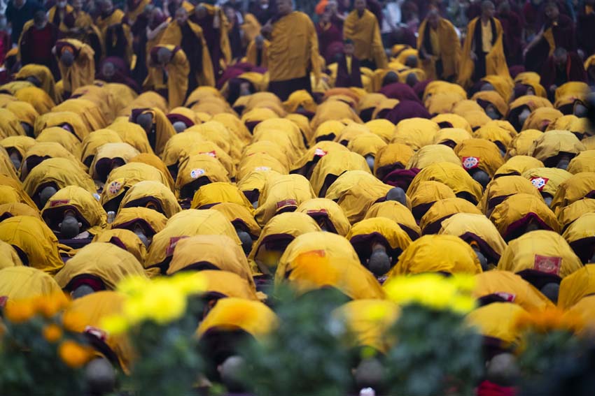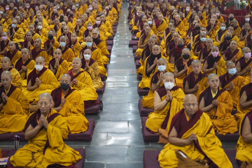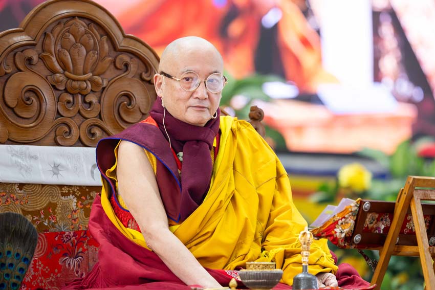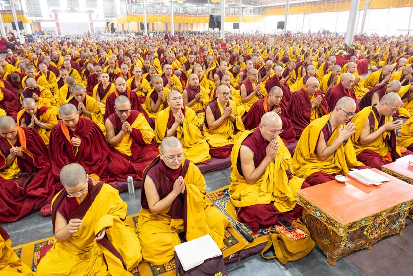 "ད་ཁྱེད་རང་ཚོ་ནམ་མཁའ་དང་མཉམ་པའི་སེམས་ཅན་ཐམས་ཅད་སྡུག་བསྔལ་ཐར། སངས་རྒྱས་ཀྱི་གོ་འཕང་འཐོབ་པར་བྱ་བའི་ཆེད་དབང་ཞུ་ཡི་ཡིན་སྙམ་པའི་བྱང་ཆུབ་མཆོག་ཏུ་སེམས་བསྐྱེད་དེ་གསན་པར་ཞུ། སྤྱིར་ཐེག་པ་ཆེན་པོའི་ཆོས་ཐམས་ཅད་གཞན་དོན་ཁོ་ན་མ་གཏོགས་རང་སྐྱིད་པོའི་དོན་དག་ལ་བསམ་བློ་རྩ་ནས་གཏོང་ཡ་མེད། དེ་ཡང་བདག་ཏུ་འཛིན་པ་དེ་འཁྲུལ་པ་རེད། དེ་འཁྲུལ་པའི་སེམས་རེད། ཁོ་བརྟག་དཔྱད་བཏང་ན་ཡོད་མ་རེད། དེ་དོན་ཏུ་གཉེར་རྒྱུ་ཡོད་མ་རེད། སེམས་ཅན་ཐམས་ཅད་སྡུག་བསྔལ་མྱོང་གི་ཡོད་རེད། སེམས་ཅན་ཐམས་ཅད་བདག་ཏུ་འཛིན་ནས་འཁྲུལ་བསྡད་ཡོད། དེ་ལས་ཉོན་མོངས་པ་མང་པོ་སྐྱེས། སྡུག་བསྔལ་མྱང་ནས་འཁྲུལ་བསྡད་ཡོད། འཁྲུལ་བ་དེ་དག་ཕར་བསལ་ནས་བདེ་བ་ཆེན་པོ་སྟེ་སྐབས་འདི་ལ་སངས་རྒྱས་རྣམ་པར་སྣང་མཛད་ཀྱི་གོ་འཕང་ལ་འགོད་པར་བྱའོ་སྙམ་དུ་བྱང་ཆུབ་མཆོག་ཏུ་སེམས་བསྐྱེད་དགོས་པ་རེད།
