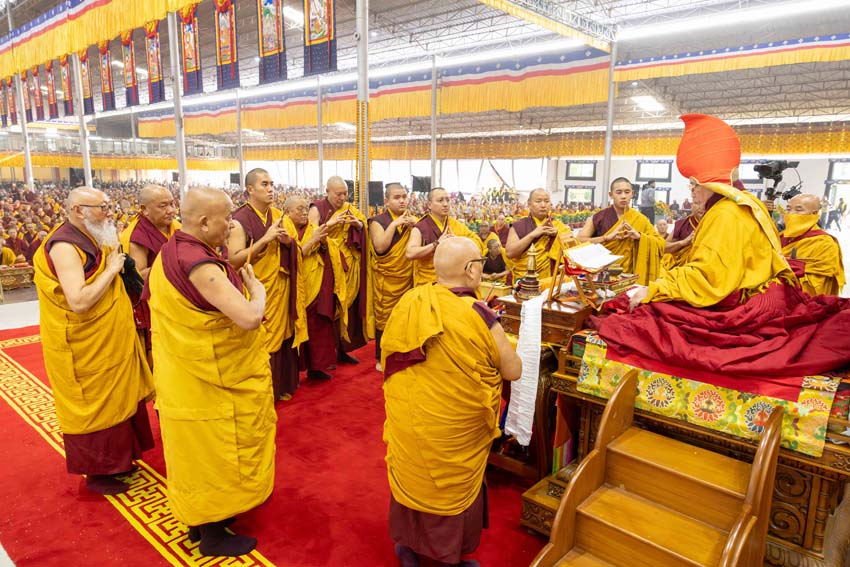 དེ་ཡང་སྔ་དྲོའི་ཆར་༧སྐྱབས་མགོན་༧རྒྱལ་བའི་རྒྱལ་ཚབ་དྲུང་གོ་ཤྲི་ཆེན་པོ་མཆོག་ནས་སྟ་གོན་དབང་སྒྲུབ་མཛད། ཉིན་རྒྱབ་ཕྱི་དྲོ་ཕྱག་ཚོད་དང་པོ་དང་ཕྱེད་ཀ་ནས་སྟ་གོན་གྱི་དབང་བསྩལ་བའི་དབུ་ཚུགས། དེ་ཡང་ཐོག་མར་༧རྒྱལ་བའི་རྒྱལ་ཚབ་ཆེན་པོ་གང་ཉིིད་སེར་སྦྲེང་ཟབ་རྒྱས་ཀྱི་སྒོ་ནས་ཆོས་ཀྱི་ཁྲི་འཕང་ཆེན་པོར་གདན་འདྲེན། ༧སྐྱབས་རྗེ་འབོ་དཀར་ཡང་སྲིད་རིན་པོ་ཆེ་དང་། འབོ་དཀར་མཁན་རིན་པོ་ཆེ་བློ་གྲོས་དོན་ཡོད་གཉིས་དབུས་པའི་ཚོགས་བཅར་བ་དད་ལྡན་སེར་སྐྱ་ཡོངས་ནས་གུས་ཕྱག་ཕུལ་རྟིང་དབུ་མཛད་ཆེན་མོས་རྡོ་རྗེ་འཆང་འཐུང་མ་དང་མནྜལ་གྱི་ཞལ་འདོན་དབུ་འཛུགས་གནང་། བཀའ་བརྒྱུད་སྨོན་ལམ་ཆེན་མོའི་འགན་འཛིན་བླ་མ་ཆོས་གྲགས་དབུས་པའི་ལས་བྱེད་ཞབས་ཞུ་བ་རྣམ་པ་དང་དད་ལྡན་སྦྱིན་བདག་རྣམས་ནས་མནྜལ་རྟེན་གསུམ་འདེགས་འབུལ་ཞུས།