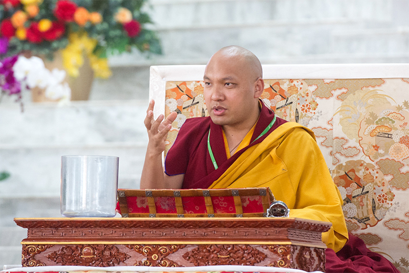 ཕྱི་ལོ་ ༢༠༡༧ ཟླ་ ༢ ཚེས་ ༡༤ ཉིན་བཀའ་བརྒྱུད་སྨོན་ལམ་ཐེངས་སོ་བཞི་པའི་སྐབས། དཔལ་༸རྒྱལ་དབང་ཀརྨ་པ་མཆོག་ནས་བཀའ་སྩལ་དོན། ཆིག་ལབ་རིང་མོ་ཉིན་སྔ་མའི་འཕྲོས་ནས་མུ་མཐུད་ཞུ་རྒྱུ་ཡིན། དགེ་བའི་བཤེས་གཉེན་ཆེན་པོ་པོ་ཏོ་བས་ཆོས་གཅིག་མ་གཏོགས་མ་ཞུས་པ་ཡིན་ཡང་དེ་ཉོན་མོངས་འདུལ་བའི་ཐབས་སུ་སྤུངས་པ་ལས་ཁ་བཤད་ཁོ་ནའི་སླད་དུ་བཞག་མེད། དེས་ན་ཆོས་བཤད་པ་དང་། བཤད་ཤེས་པ་ཙམ་གྱིས་མི་ཕན་པར་རྒྱུད་ལ་སྦྱོར་དགོས། རྒྱུད་ལ་སྦྱོར་དགོས་ཞེས་པ་ནི། ཆོས་ནས་གསུངས་པ་ཇི་བཞིན་རང་གི་སེམས་རྒྱུད་ལ་སྦྱོར་བ་དང་། ཉིན་རེའི་འཚོ་བའི་ནང་དུ་ལག་ལེན་བསྟར་རྒྱུ་དེ་ཡིན།