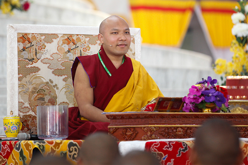 ཕྱི་ལོ་ ༢༠༡༧ ཟླ་ ༢ ཚེས་ ༡༦ ཉིན། དཔལ་༸རྒྱལ་དབང་ཀརྨ་པ་མཆོག་བཀའ་བརྒྱུད་སྨོན་ལམ་ཆོས་རའི་བཞུགས་ཁྲིར་ཞབས་པད་འཁོད་རྟིང་ཤར་ནུབ་དད་སྦྱིན་བརྒྱ་ཕྲག་བརྒལ་བ་ནས་མནྜལ་སྐུ་གསུང་ཐུགས་རྟེན་འདེགས་འབུལ་ཞུས། དེ་ནས་༸རྒྱལ་དབང་མཆོག་ནས་བཀའ་སྩལ་དོན་དུ། སྔ་དྲོའི་ཆར་ཚང་མ་ལ་སྔ་དྲོ་བདེ་ལེགས་ཞུ་རྒྱུ་ཡིན། དེ་རིང་འདིར་སྨོན་ལམ་དངོས་གཞིའི་གསུང་ཆོས་ཉིན་མཐའ་མ་ཡིན། དགེ་བཤེས་པོ་ཏོ་བའི་ཆིག་ལབ་རིང་མོ་འདི་ད་དུང་ལོ་གཅིག་གཉིས་ཙམ་འགོར་བར་སྙམ།
