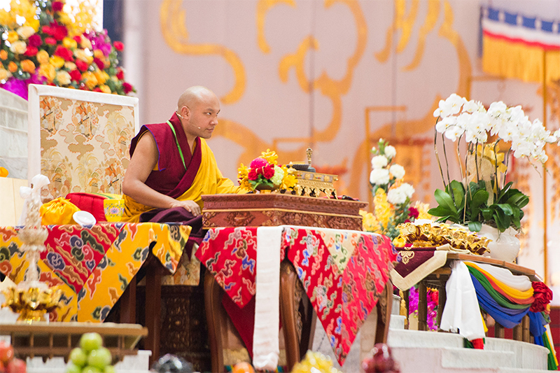 སྐྱ་འཆམ་གཟིགས་ཞིབ་ཕྱིར་དབུ་བཞུགས་སུ་ཐོག་མའི་ཆར་དཔལ་༸རྒྱལ་དབང་ཀརྨ་པ་མཆོག་གི་དབུས། སྐྱབས་རྗེ་རྒྱལ་ཚབ་རིན་པོ་ཆེ་དང་། མི་འགྱུར་རིན་པོ་ཆེ། འབོ་དཀར་ཆུང་སྲིད་རིན་པོ་ཆེ། མཁན་པོ་བློ་གྲོས་དོན་ཡོད་རིན་པོ་ཆེ། འཇའ་ཚོན་རིན་པོ་ཆེ་སོགས་བླ་སྤྲུལ་རྣམས་དང་། བཤད་གྲྭ་ཁག་གི་མཁན་སློབ་རྣམ་པ། དེ་བཞིན་གྲྭ་ཚང་ཁག་གི་དབུ་ཆོས་རྣམ་པ། དགེ་བཙུན་འདུས་པ་རྒྱ་མཚོ། འཛམ་གླིང་ཤར་ནུབ་ཀྱི་རྒྱལ་ཁབ་ཁག་ནས་ཕེབས་པའི་དད་ལྡན་སྟོང་ཚོ་དུ་མ་བཅས་ཡོངས་བསྡོམས་ཁྲི་ལ་ཉེ་བར་འདུས།