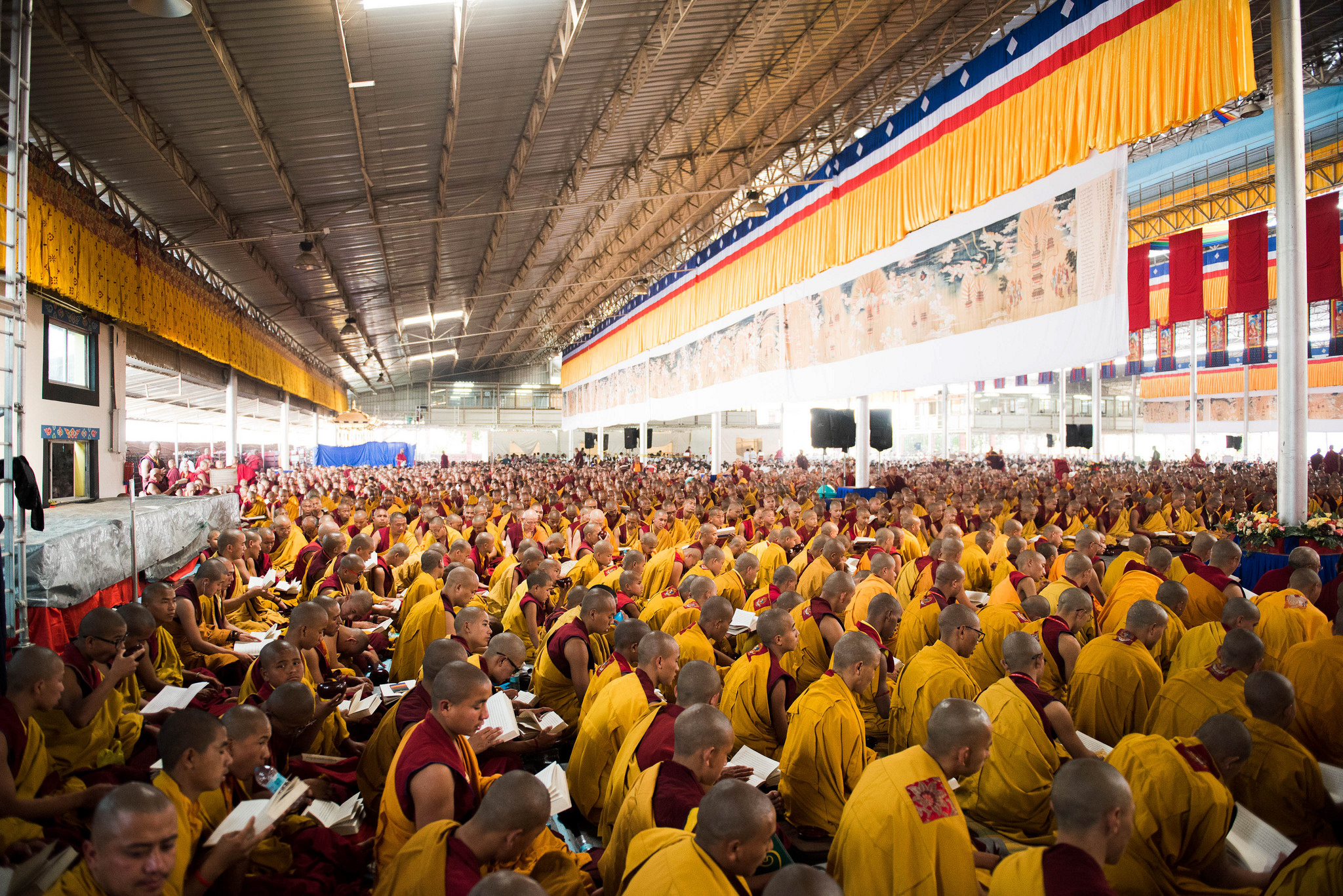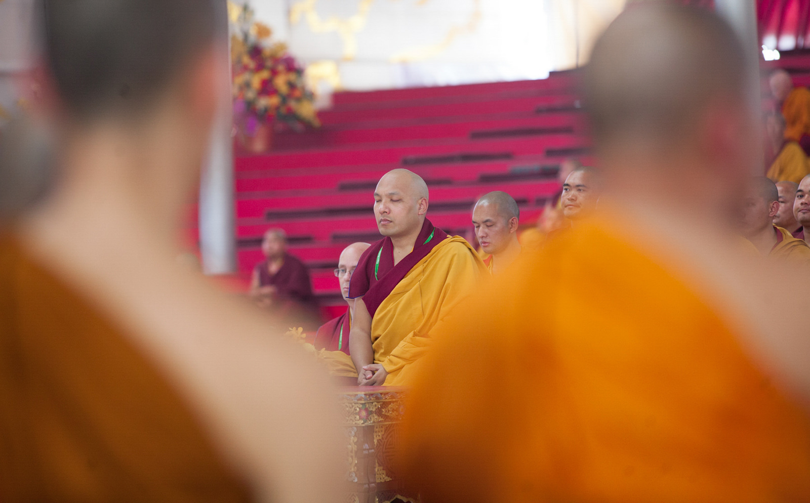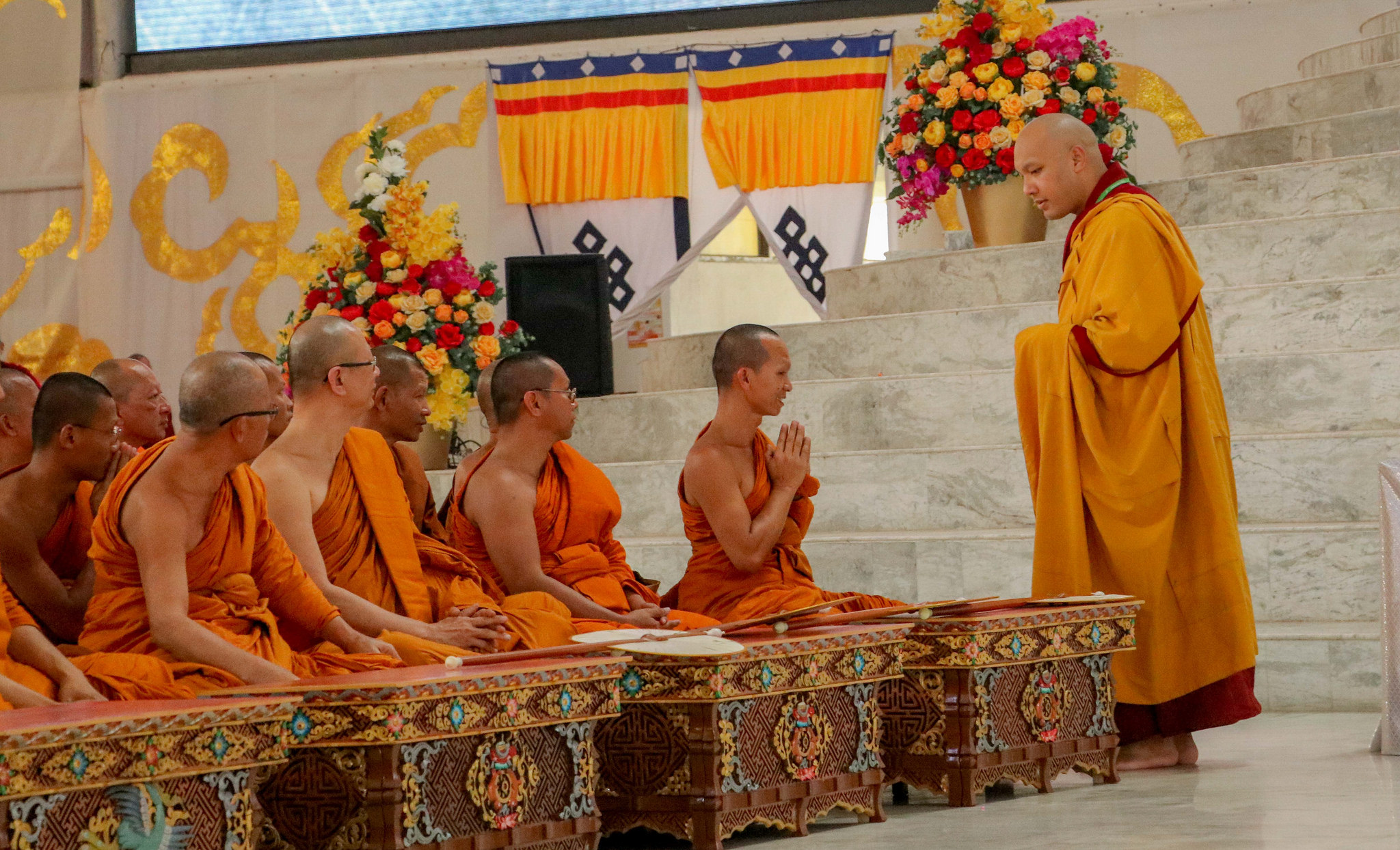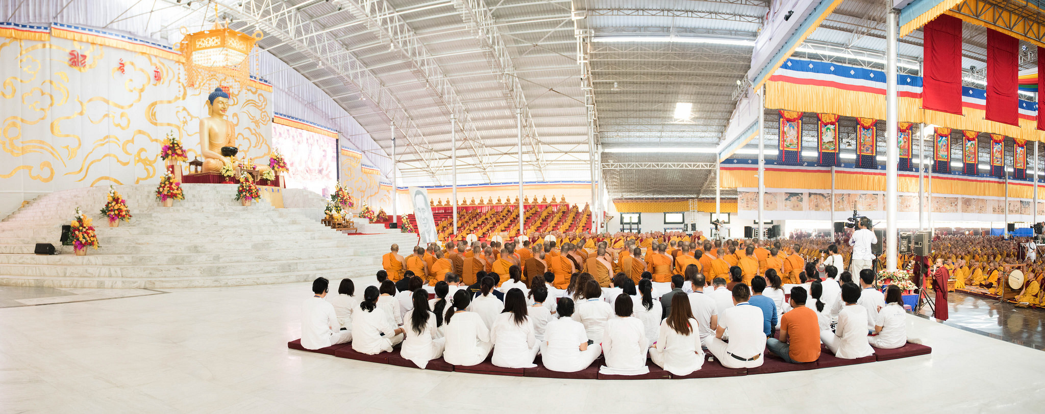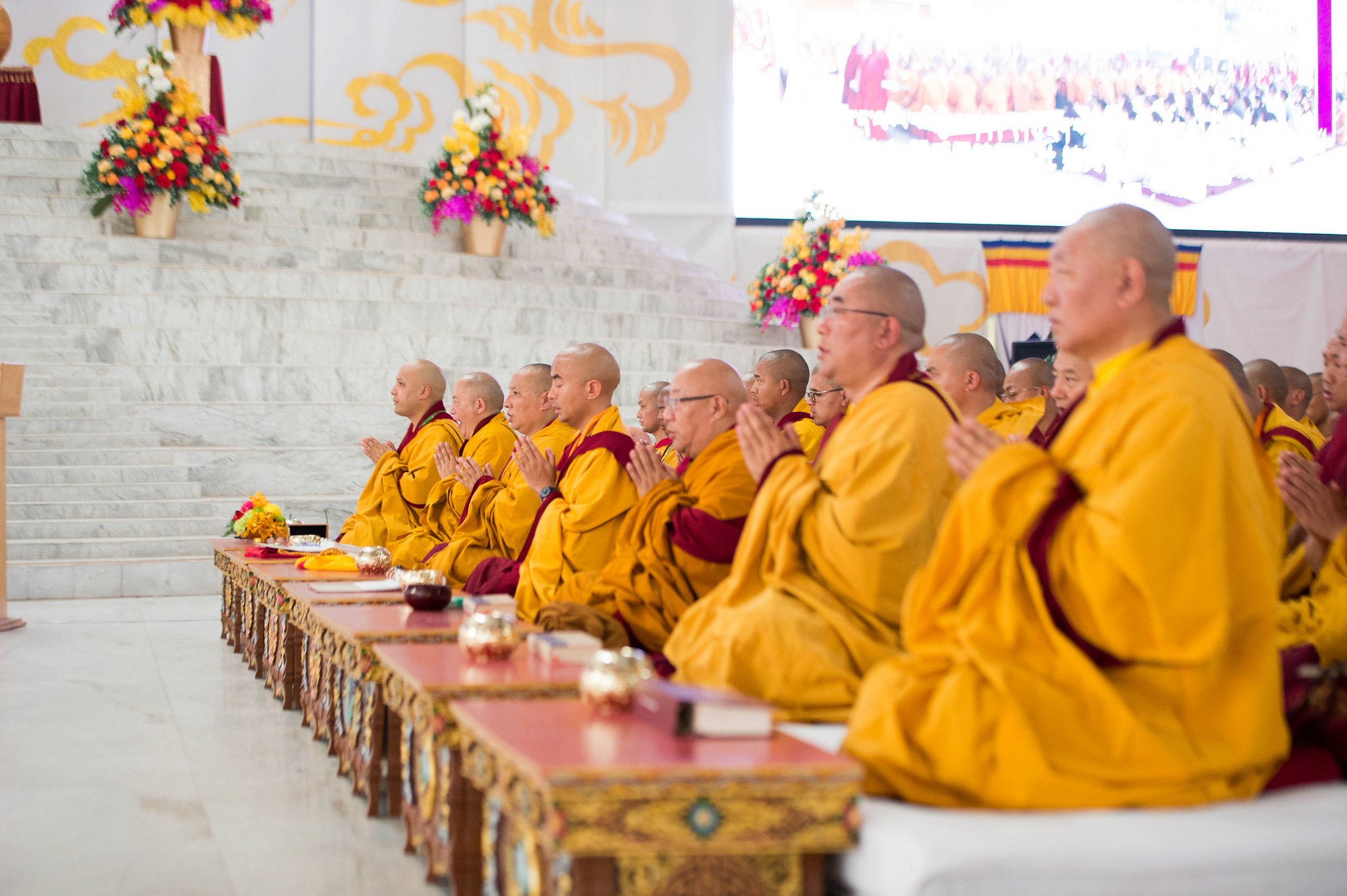來自五十多個國家的數千位僧俗,跟隨著維那師們一起念誦《不動佛國經》