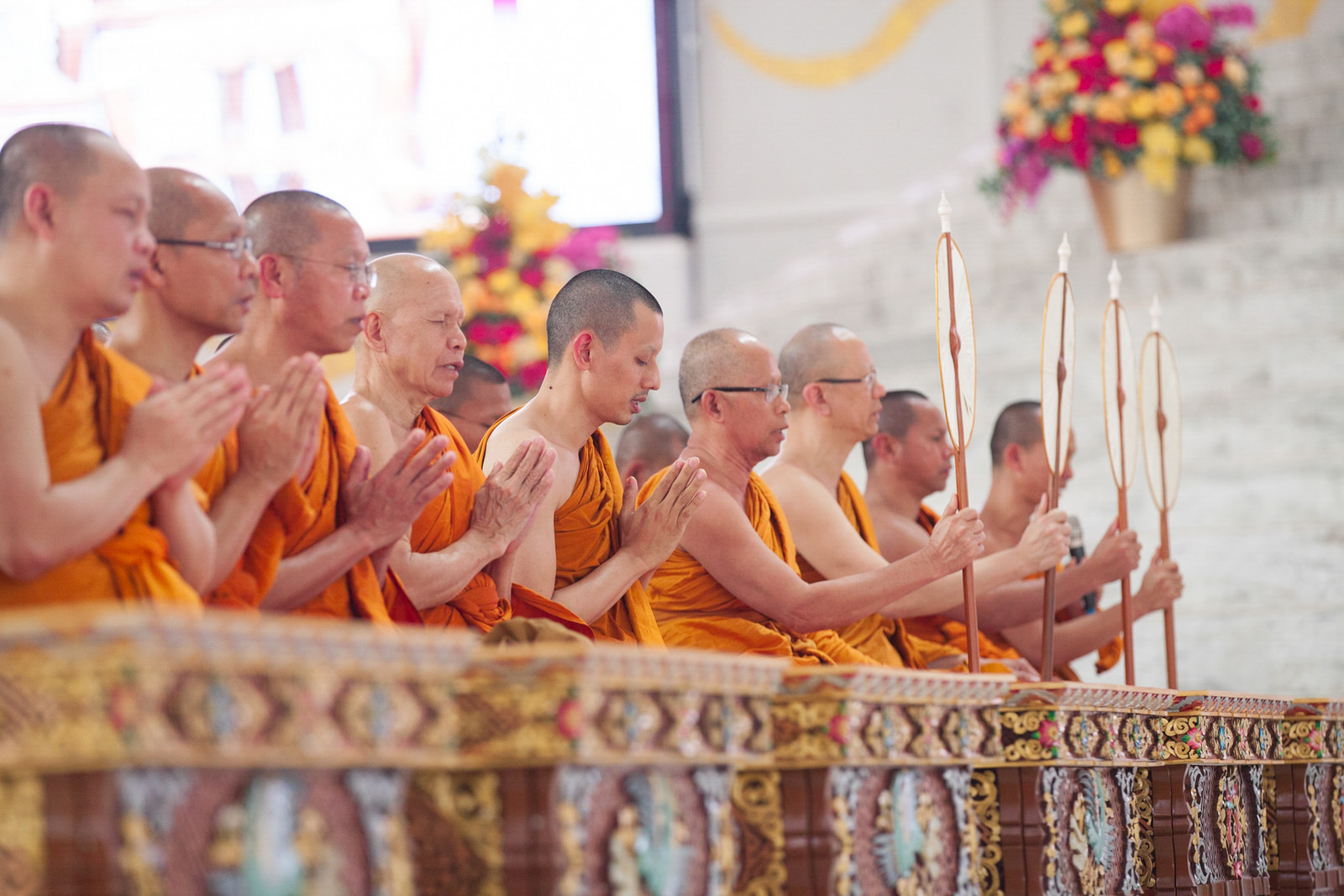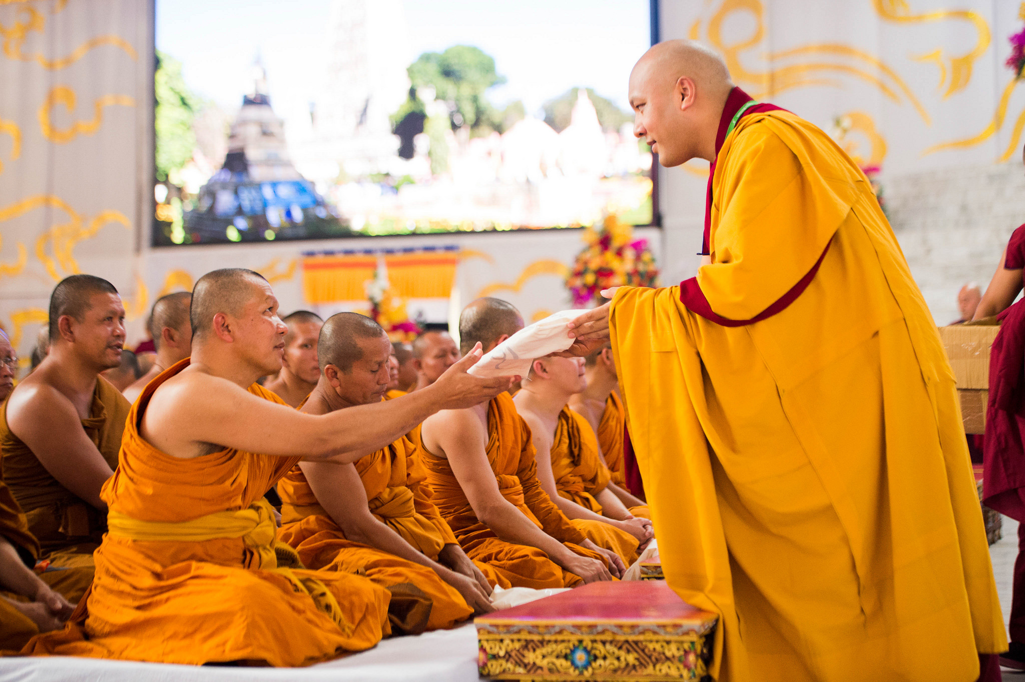 藏傳佛教和泰國佛教僧眾共同舉行了一場融合泰國傳統的法事。舞台上僧袍不同的顏色和樣式,令人思及佛法的微妙廣大。