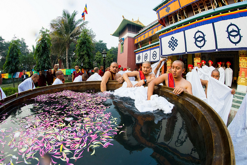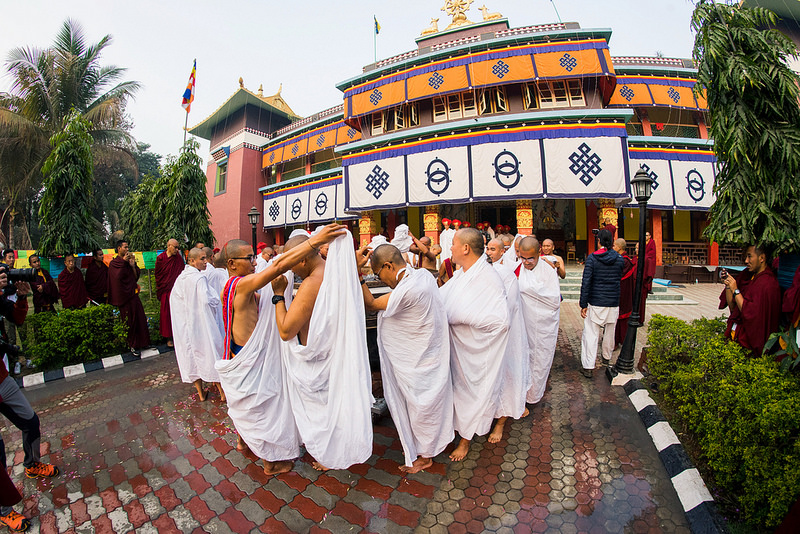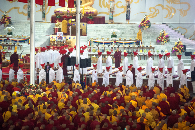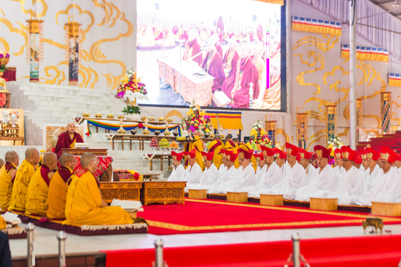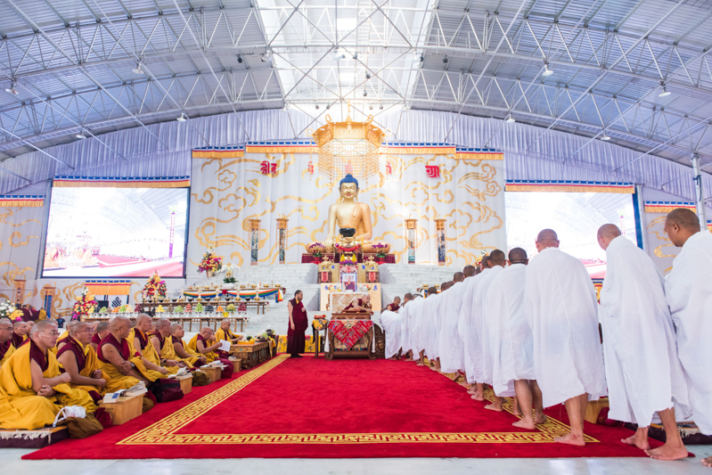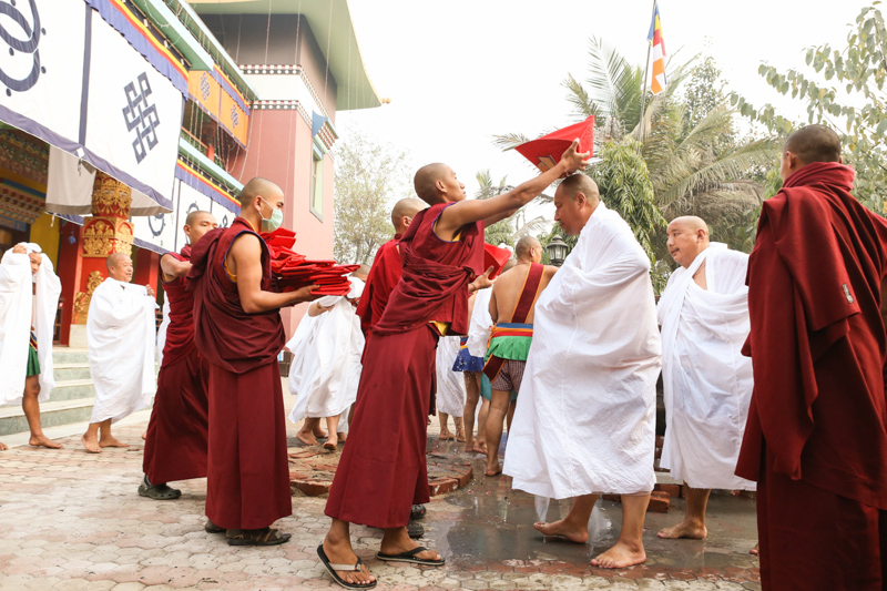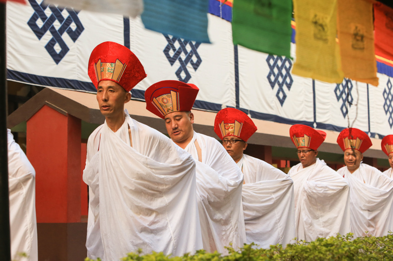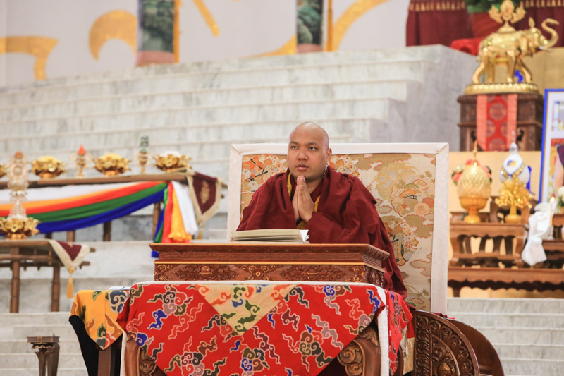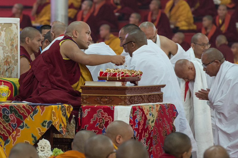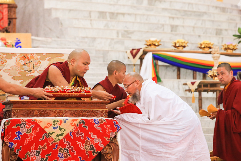 隆德寺三年傳統閉關中心的指導上師躬身接受法王的禮物