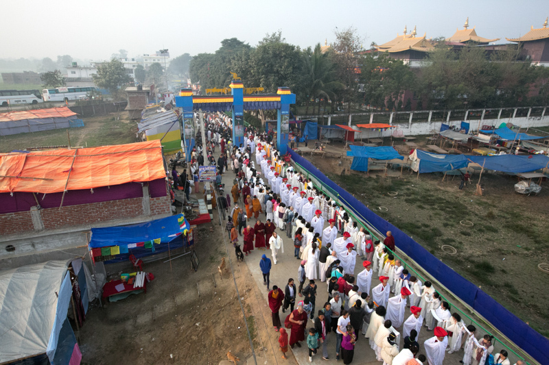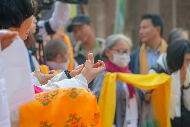 繞行隊伍從德噶寺走向祈願會場,信眾夾道迎接,場面壯觀