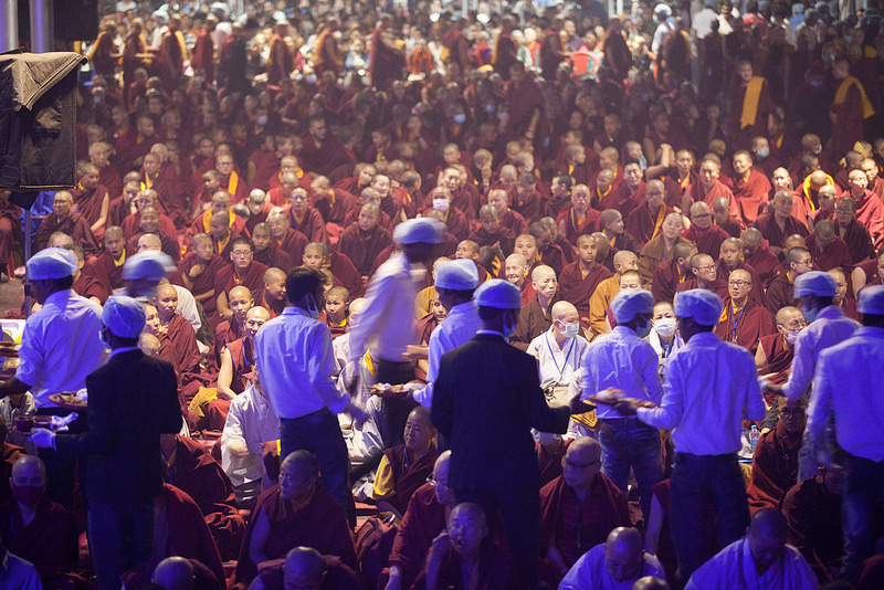 晚宴是以第八世噶瑪巴米覺多傑著作的《勝樂薈供》為基礎。在表演節目開始前,先由主要寺院的維那師帶領修持前行。